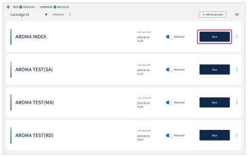 - Toque [Ejecutar] en la pantalla de inicio del proceso seleccionado.