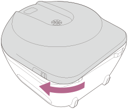Deslice la palanca de apertura OPEN de la cubierta delantera, gire la cubierta delantera ligeramente hacia la izquierda y extraiga la cubierta delantera.
