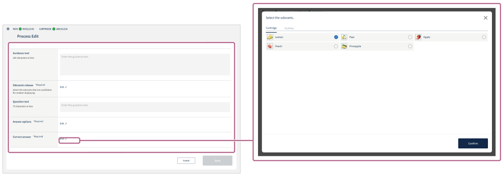 Liberación de olor (*Obligatorio): toque [Editar