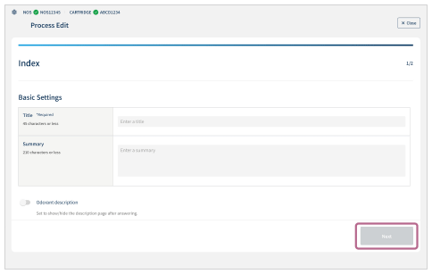 - Appuyez sur [Créer] dans la section [Index] de l’écran [Création de processus].