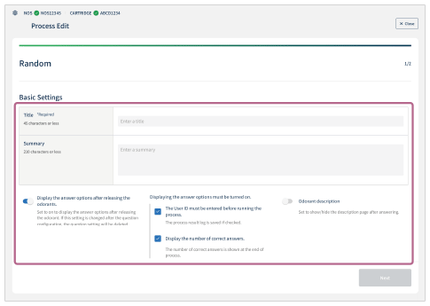 - Appuyez sur [Créer] dans la section [Aléatoire] de l’écran [Création de processus].