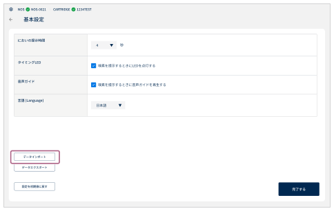 - JSONファイルをコピーしたタブレットの「Scent Canvas」アプリを起動し、ホーム画面右上の