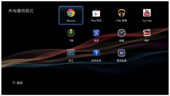 此畫面顯示了Smart Stick中已安裝的所有應用程式。所有應用程式清單以字母排序,且包括了開啟網站的捷徑。你也可以從此畫面存取[