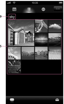 (Albumansicht) auf dem Listenbildschirm, um die Albumansicht aufzurufen. Wenn Sie auf einen Albumnamen tippen, können Sie zur Miniaturbildliste der Bilder in diesem Album wechseln.