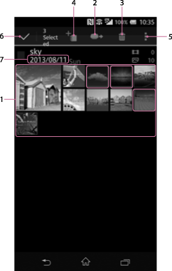 Share: See Sharing images by selecting in the List screen (Android).