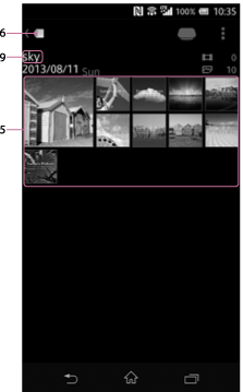 (albumweergave) om de lijst met albums te tonen. Dit scherm heet "albumweergave". Als u op de naam van een album tikt, wordt het miniatuurlijstscherm met de beelden in dat album weergegeven.