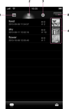 تعرض الصورة المصغرة للصورة الأولى في كل من الألبومات. انقر أحد الألبومات لفتح نافذة قائمة الصور المصغرة لذلك الألبوم.