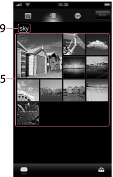 (Albumansicht) auf dem Listenbildschirm, um die Albumansicht aufzurufen. Wenn Sie auf einen Albumnamen tippen, können Sie zur Miniaturbildliste der Bilder in diesem Album wechseln.