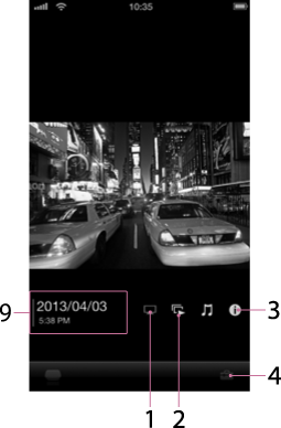 Tapez sur une miniature sur l’écran liste des miniatures pour basculer vers l’écran d’Affichage Photo/Affichage Vidéo.