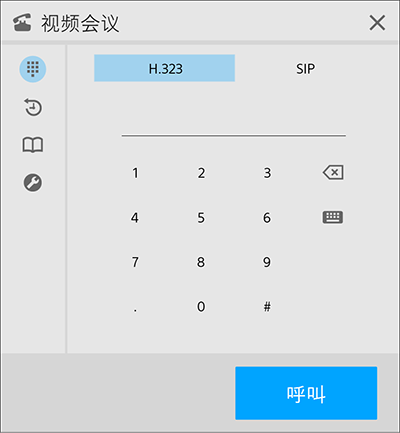- 选择[H.323]或[SIP],输入视频会议对方的地址,然后按[呼叫]。