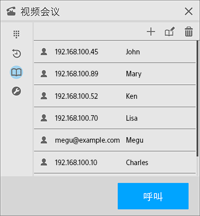 可以在地址簿中注册联系人,然后使用地址簿启动视频会议。