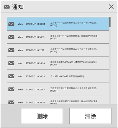 如果在Vision Exchange中发出任何通知,这些通知会在[通知]窗口中一起显示。