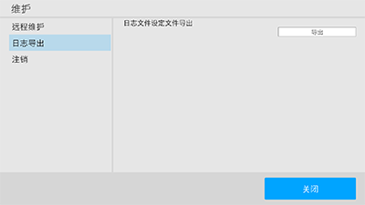 可以在[日志导出]页面中将记录文件和设置文件保存到连接至USB接口的USB闪存驱动器中。