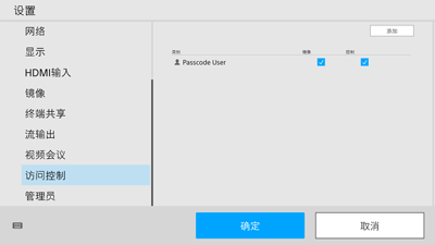 在[访问控制]窗口的[类别]中输入用户名,在[用户Token]中输入任意字符串,配置[镜像]和[控制],然后按下[确定]。
