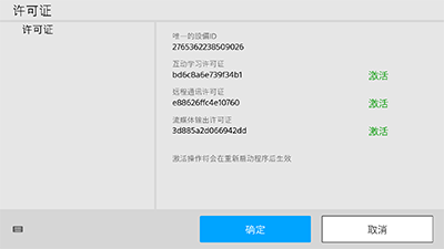 - 按[许可证]显示[许可证]屏幕,查看在[唯一的设备ID]中显示的字符串。