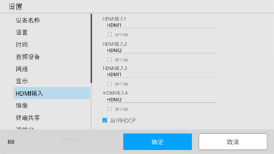 勾选此项,以便从连接到HDMI IN 1至4接口*的设备启用HDCP视频保护。