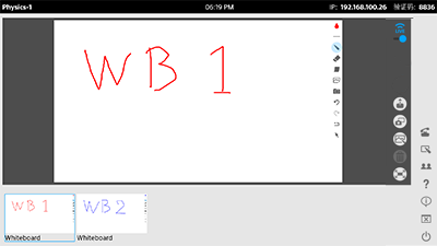 在内容区域中显示一个白板时,内容区域右侧会显示各个白板功能的按钮。
