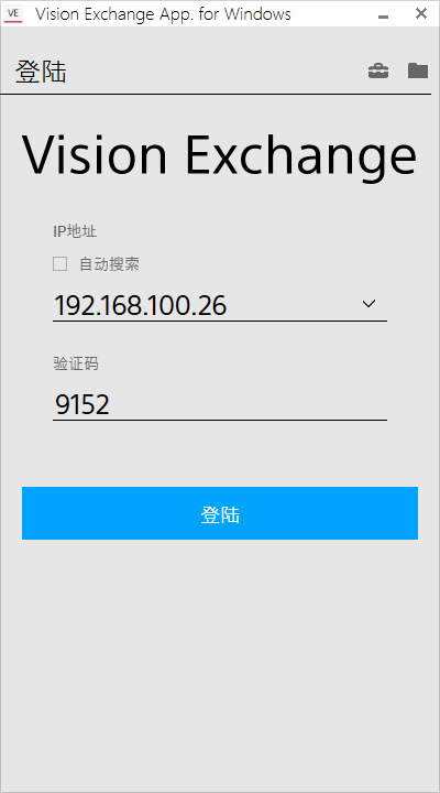 使用令牌验证进行登陆时,通过Vision Exchange App.输入主机和Pod的IP地址,然后按下[登陆]。