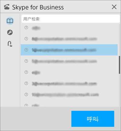 在[Skype for Business]窗口中,选择要添加到视频会议的对方,然后按[呼叫]。