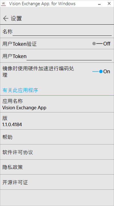 显示Vision Exchange App.的版本。 - [帮助]