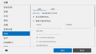 输入[IP地址]、[子网掩码]和[默认网关]的设置,为DNS服务器选择[自动获取DNS服务器地址]或[使用下面的DNS服务器地址]。