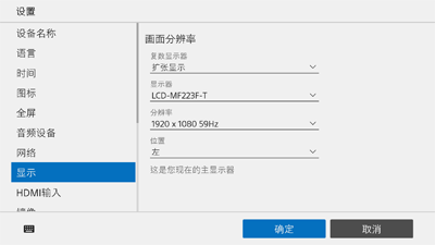 选择两个显示器之间的左右位置的关系。在[显示器]中选择选定显示器的左或右位置。