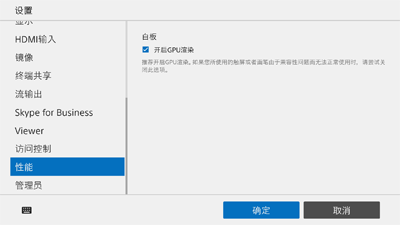 勾选此项以启用白板的GPU渲染。如果触屏或画笔因兼容性问题而无法正常使用,请取消勾选此项。