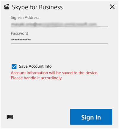 - Enter your sign-in address, user name, and password, and press [Sign In].