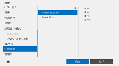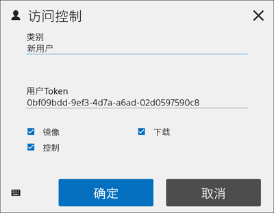 在[访问控制]窗口的[类别]中输入用户名,在[用户Token]中输入任意字符串,配置[镜像]、[控制]和[下载],然后按下[确定]。
