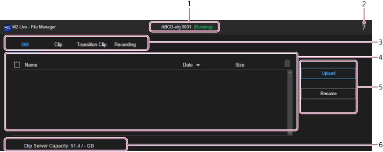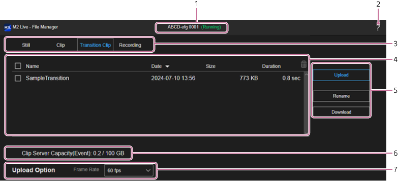 - Event name/status display: Displays the name/status of the event for which the [File Manager] screen was opened.