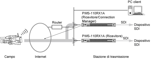È possibile inviare in streaming l’ingresso SDI di un’unità PWS-110RX1A a un’altra unità PWS-110RX1A.