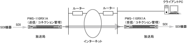 PWS-110RX1AのSDI入力を別のPWS-110RX1Aにストリーミングします。