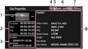 - Kopiointikohteen leikenumero, kun kopioidaan MP4-muodon leikettä, numeroidaan [TC/Media] – [Clip Name Format] – [Clip Number] -asetuksen mukaisesti koko valikossa.