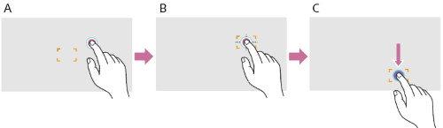 Atingeţi ecranul pentru a muta zona de focalizare, cu zona de focalizare centrată pe poziţia care a fost atinsă. Glisați pe ecran pentru a muta zona de focalizare în poziția indicată de degetul dvs.