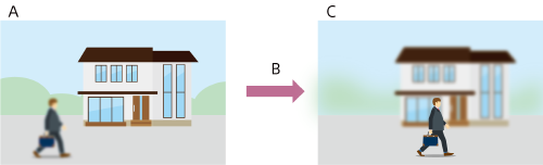Când este selectată opțiunea [7(Fast)] focalizarea comută rapid între subiecți. Subiectul care intră în cadru este focalizat imediat, ceea ce face această setare ideală pentru filmarea documentarelor, care necesită focalizare rapidă.