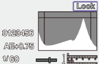 În modul de înregistrare cu jurnal, „Look” este afișat în partea dreapta sus a monitorului de semnal video când LUT este aplicat pentru a indica ținta monitorului. „SG3/SLog3” sau „SG3C/SLog3” este afișat atunci când LUT nu este aplicat.