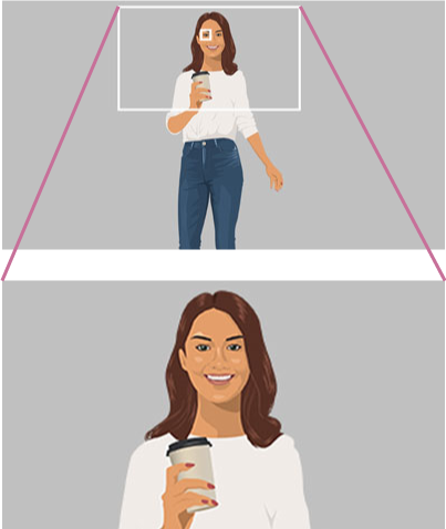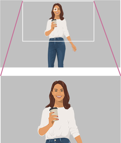 Automatické zarámovanie je funkcia, pri ktorej kamera rozpozná osoby a potom oreže, zaznamená a vytvorí obrázok, ktorý zodpovedá vopred nakonfigurovaným kompozíciám.