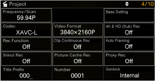 Legen Sie vor Aufzeichnungsbeginn auf dem Statusbildschirm [Project] die Grundfunktionen des Geräts passend für den jeweiligen Einsatz fest.