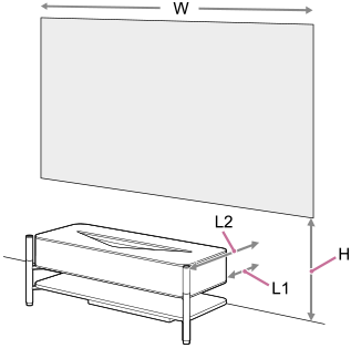 *1この場合の「背面までの距離」とは、プロジェクター背面のリアスタンド部ではなく、プロジェクターの天面の位置までの距離を指しています。
