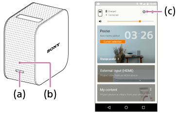 Skift til netværksstandby enten fra projektoren eller smartphonen.- Projektor: Tryk let på strømknappen (a).