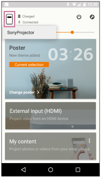 - Pärast seadme nime muutmist saate kontrollida muudetud projektori nime, vajutades erirakenduse avalehel