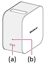 Pidä virtapainiketta (a) painettuna. Projektori kytketään päälle ja virtailmaisin (b) syttyy valkoisena.
