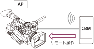 カムコーダーをアクセスポイント(AP)にして、モバイル端末でカムコーダーをリモート操作します。