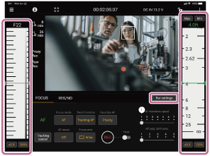 - [Focus area]:[Focus area]が[Zone]または[Spot]のとき、カメラ映像をタップして表示されているフォーカスエリア枠を移動します。