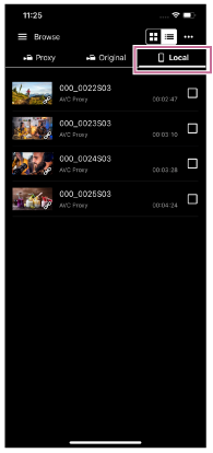 Die in das Steuergerät importierten Clips werden angezeigt.