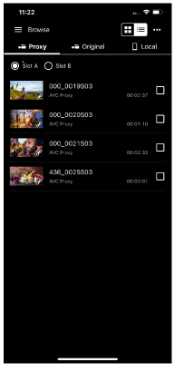 Falls [Slot A] und [Slot B] angezeigt werden, wählen Sie den Einschub aus und tippen dann auf einen Clip.
