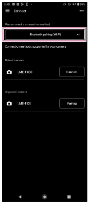 : sélectionnez [Bluetooth pairing (Wi-Fi)] sur l’écran de connexion.