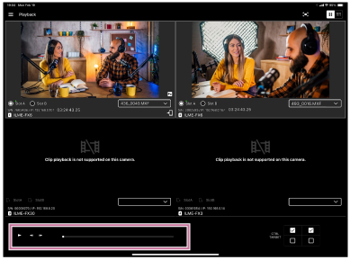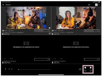 Contrassegnare con un segno di spunta la casella di controllo della telecamera con il clip da riprodurre.
