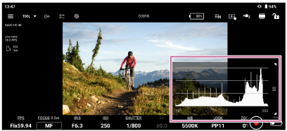 Mostra l’immagine live convertita a ITU709(800%) equivalente durante le riprese in S-Log3.
