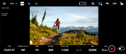 - Nella modalità di ripresa Log con LUT [S-Log3] selezionata e [Display LUT] impostato su [On]
